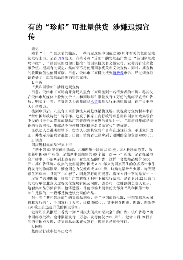 有的“珍郵”可批量供貨 涉嫌違規(guī)宣傳