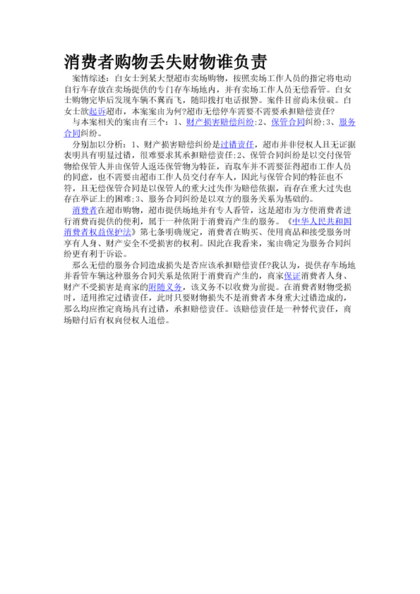 消費(fèi)者購(gòu)物丟失財(cái)物誰負(fù)責(zé)