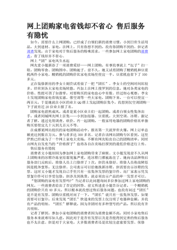 網(wǎng)上團(tuán)購家電省錢卻不省心 售后服務(wù)有隱憂
