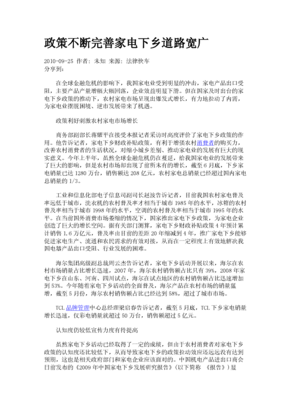 政策不斷完善家電下鄉(xiāng)道路寬廣(8.86KB)