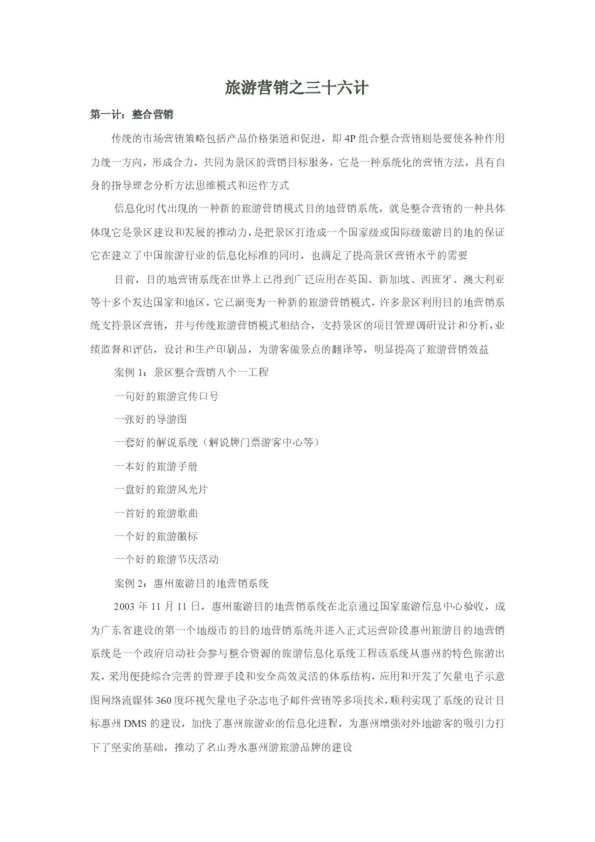 為加快旅游國(guó)際化步伐,把張家界建設(shè)成為世界旅游目的地,特提出以下三十六計(jì)對(duì)策措施供決策部門參考。 第一計(jì): 傳統(tǒng)的市場(chǎng)營(yíng)銷策略包括產(chǎn)品價(jià)格渠道和促進(jìn),即 4P 組合整合 營(yíng)銷則是要使各種作用力統(tǒng)一方向,形成合力,共同為景區(qū)的...