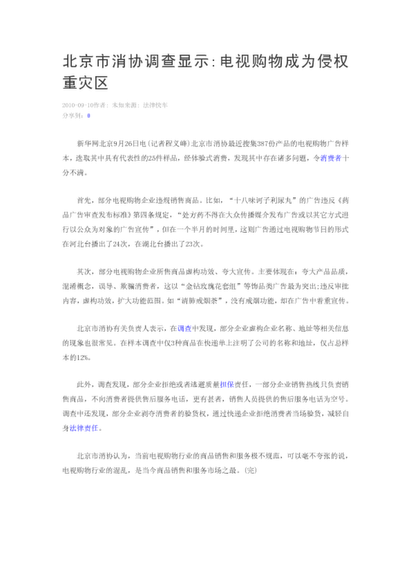 北京市消協(xié)調(diào)查顯示電視購物成為侵權(quán)重災(zāi)區(qū)(18.00KB)