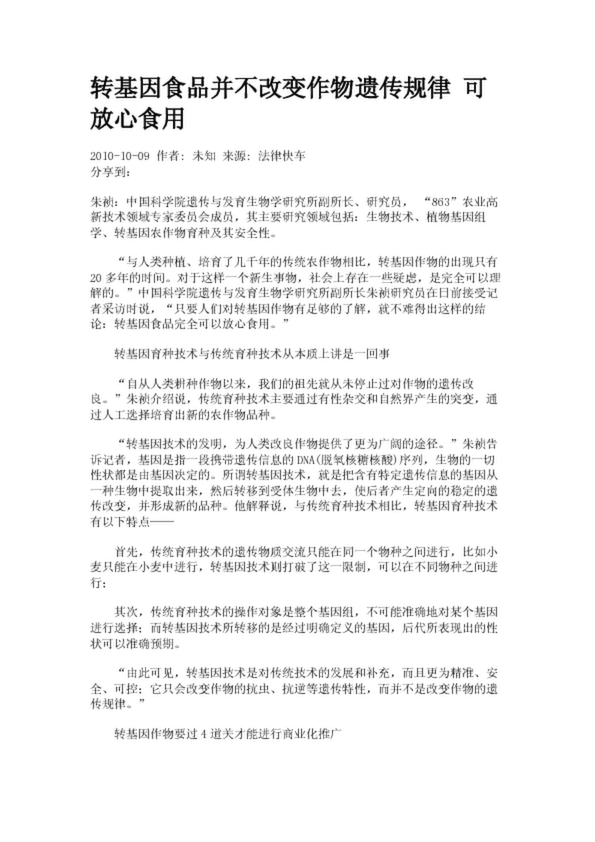 轉基因食品并不改變作物遺傳規(guī)律 可放心食用
