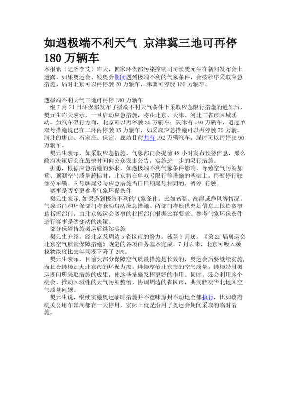 如遇極端不利天氣 京津冀三地可再停180萬(wàn)輛車(20.14KB)
