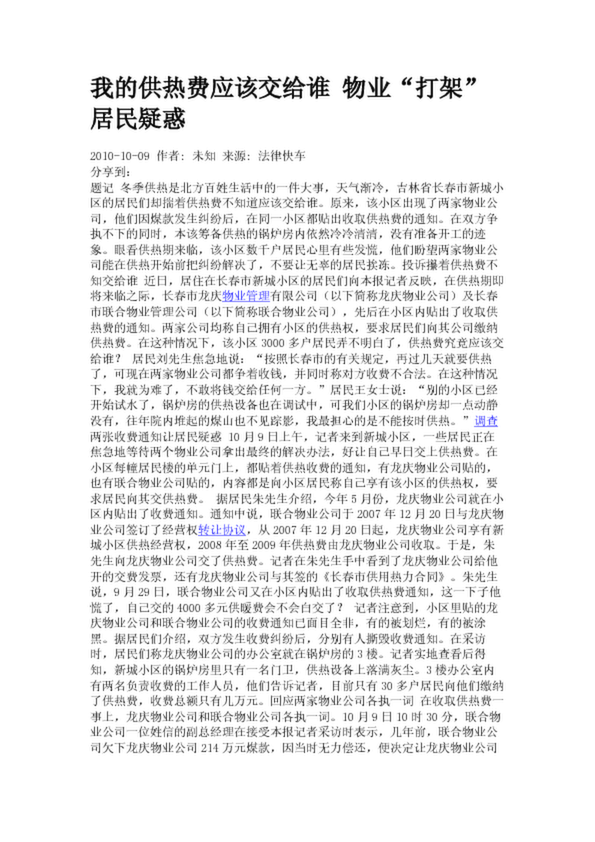 我的供熱費應(yīng)該交給誰 物業(yè)“打架”居民疑惑