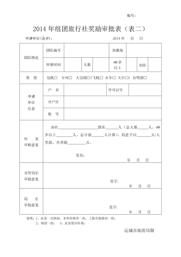 2014年組團旅行社獎勵審批表