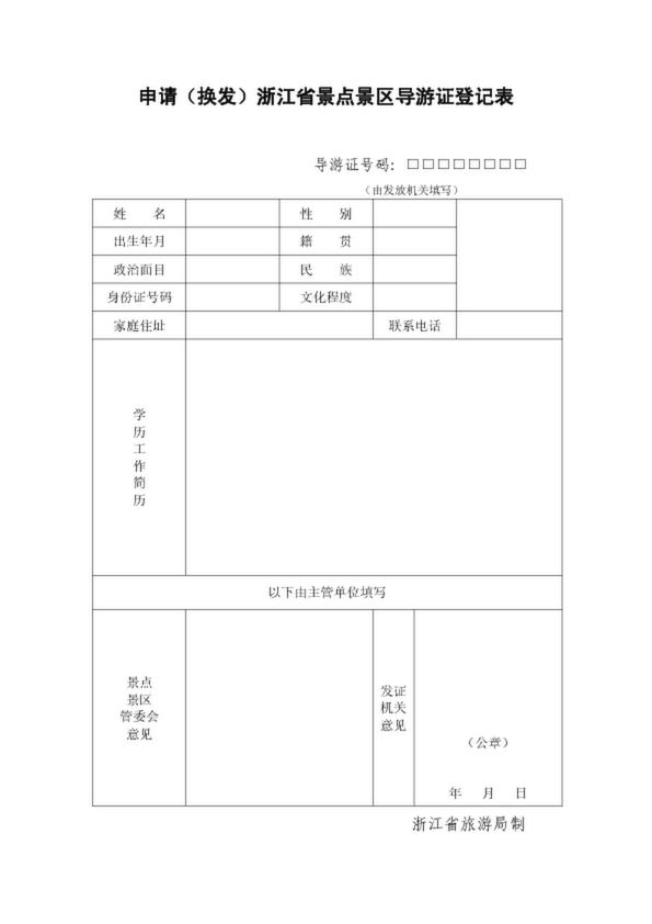 申請(換發(fā))浙江省景點(diǎn)景區(qū)導(dǎo)游證登記表