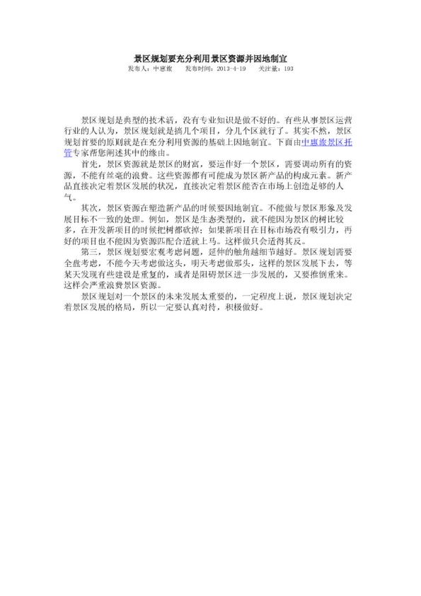 景區(qū)規(guī)劃要充分利用景區(qū)資源并因地制宜
