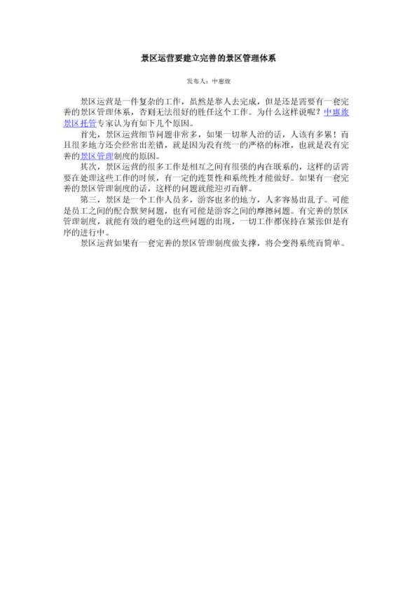 景區(qū)運營要建立完善的景區(qū)管理體系