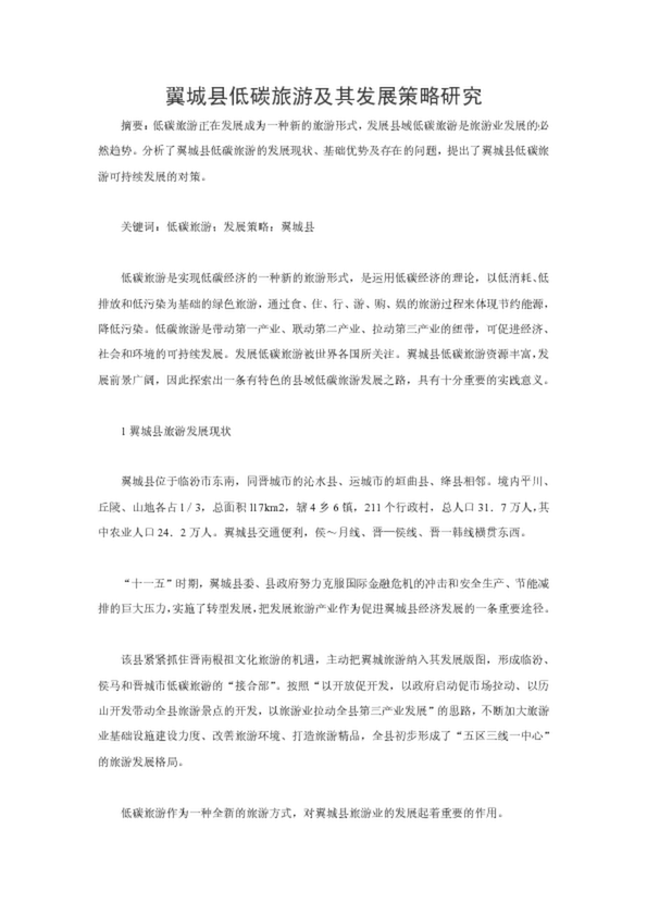 翼城縣低碳旅游及其發(fā)展策略研究