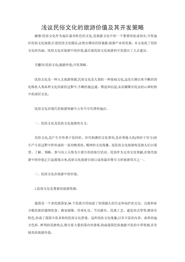 淺議民俗文化的旅游價(jià)值及其開發(fā)策略