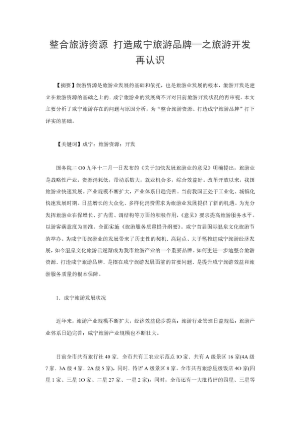 整合旅游資源 打造咸寧旅游品牌—之旅游開發(fā)再認(rèn)識(shí)