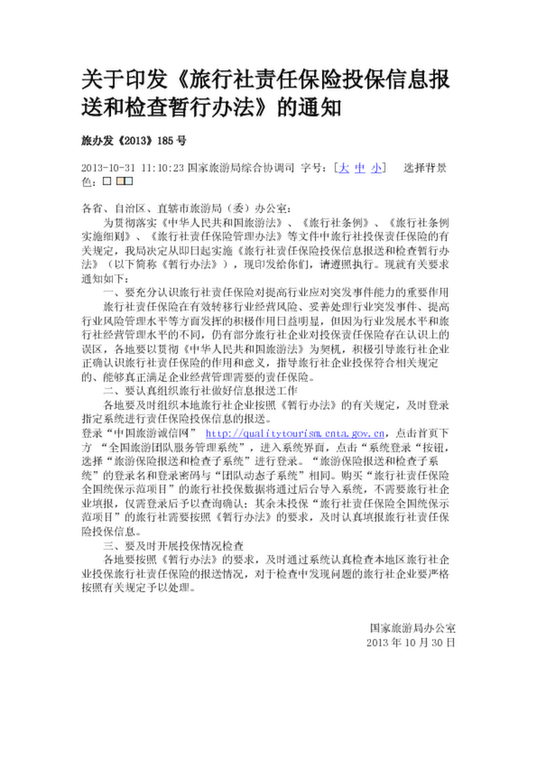 關(guān)于印發(fā)《旅行社責(zé)任保險(xiǎn)投保信息報(bào)送和檢查暫行辦法》的通知(4.92KB)