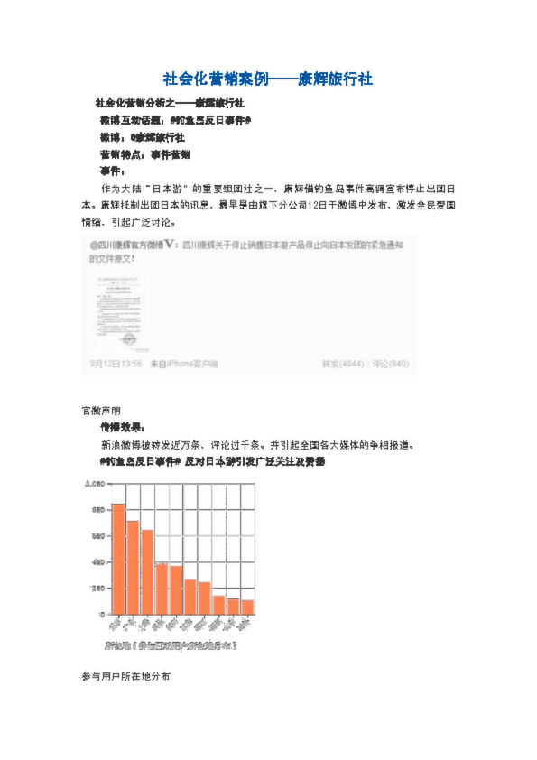 以康輝旅行社為例子, 講述社會(huì)化營(yíng)銷(xiāo),本文中康輝旅行社微博互動(dòng)話題:#釣魚(yú)島反日事件#:事件營(yíng)銷(xiāo)事件:作為大陸“日本...