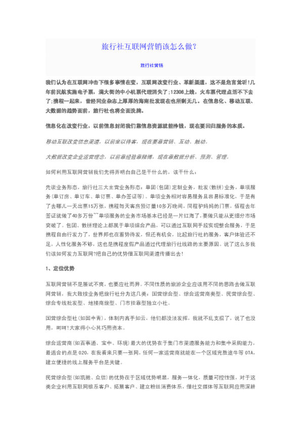 網(wǎng)絡(luò)營銷,說白了,就是在互聯(lián)網(wǎng)上賣東西,對(duì)于旅行社來說,開展網(wǎng)絡(luò)營銷主要是在...做好網(wǎng)絡(luò)廣告的要點(diǎn),在于選擇到哪個(gè)網(wǎng)站去做網(wǎng)絡(luò)廣告。 視頻營銷:視頻營銷即用...