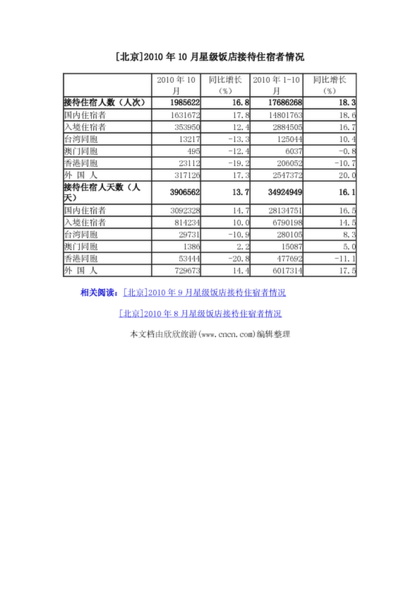 [北京]2010年10月星級飯店接待住宿者情況(15.97KB)