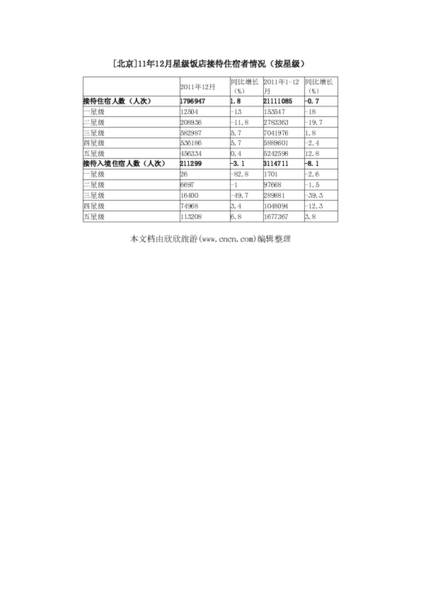 [北京]11年12月星級飯店接待住宿者情況(按星級)