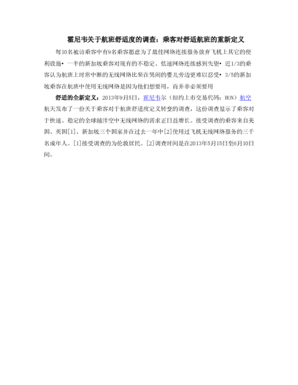 霍尼韋關(guān)于航班舒適度的調(diào)查:乘客對舒適航班的重新定義