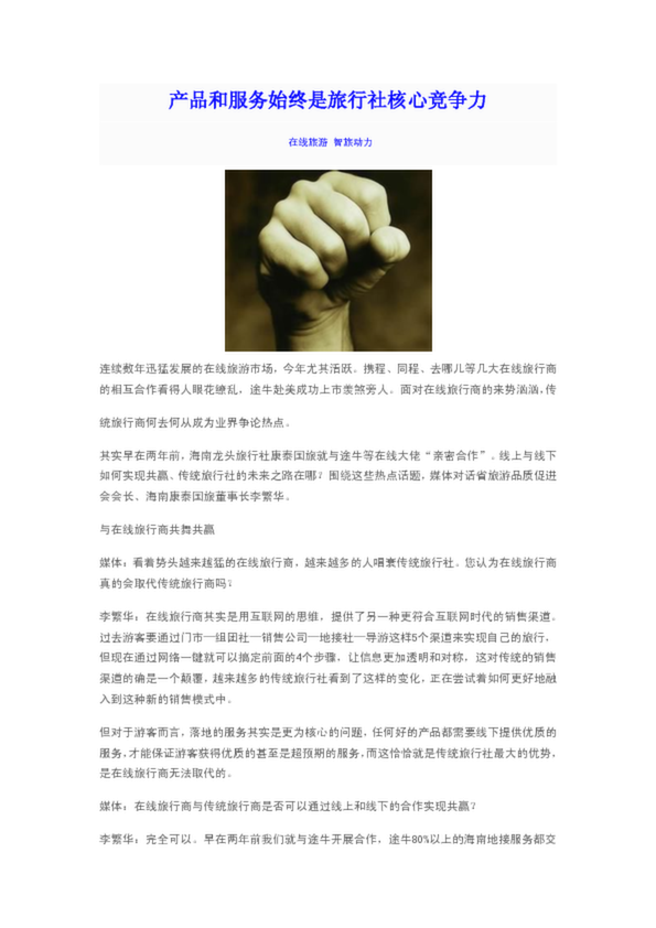 產(chǎn)品和服務始終是旅行社的核心競爭力(30.00KB)