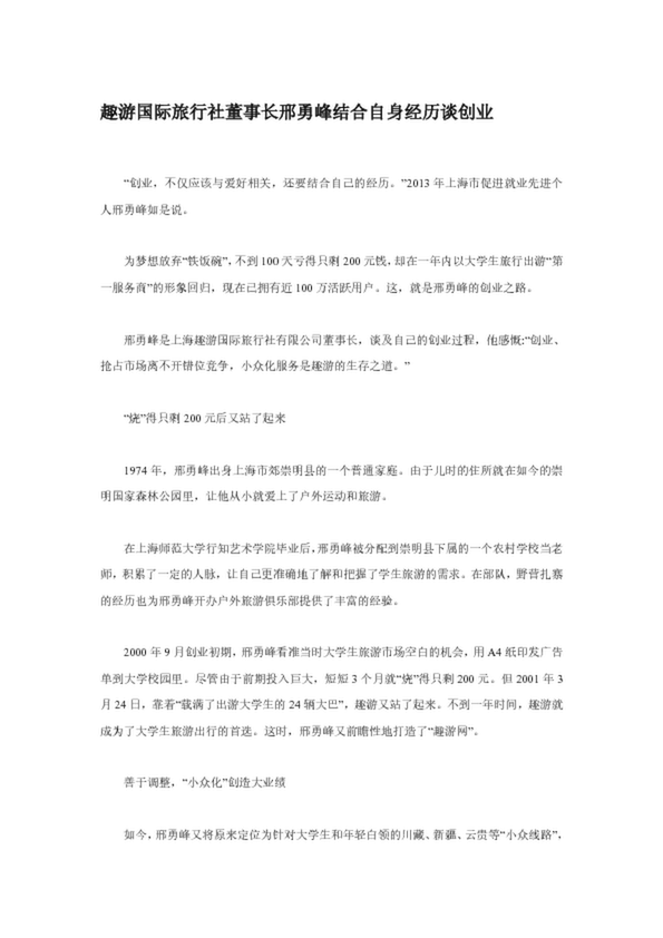 趣游國際旅行社董事長邢勇峰結(jié)合自身經(jīng)歷談創(chuàng)業(yè)