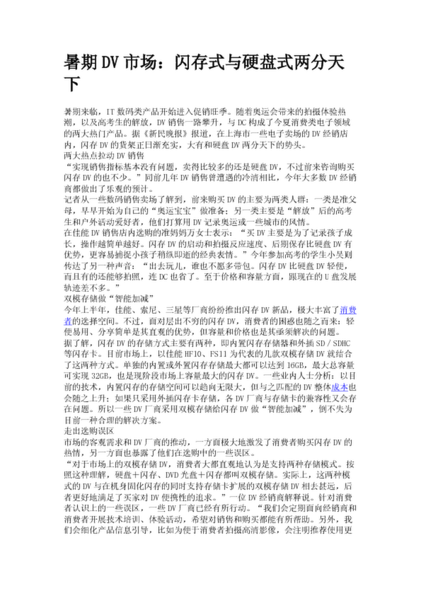暑期DV市場(chǎng):閃存式與硬盤(pán)式兩分天下