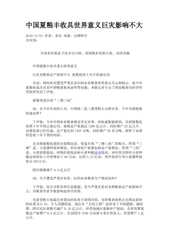 中國(guó)夏糧豐收具世界意義巨災(zāi)影響不大(5.30KB)